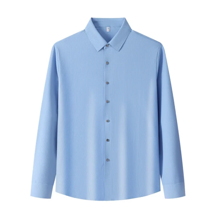 Lightweight Men’s Long Sleeve Shirt with Ribbed Texture Autumn Versatile Wrinkle-Resistant ODM Supply-Blue / 2 XL